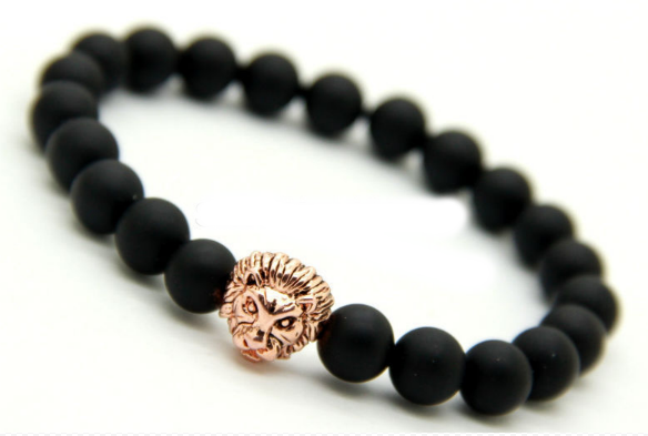 This Rose Gold colored Lion Bracelet is stunning.  The Shade of the lion really makes the bracelet pop, and the elegance of the matte black beads keep the piece simple and beautiful.