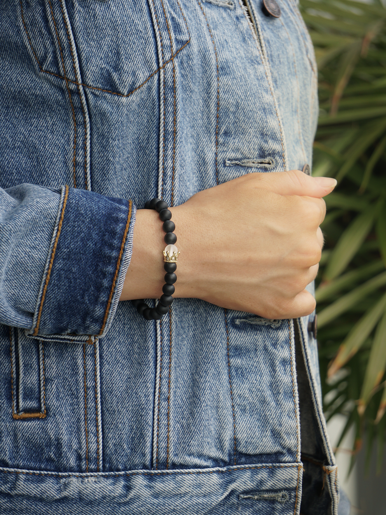 • Natural Matte Black with Onyx with a Flash Bead and crown